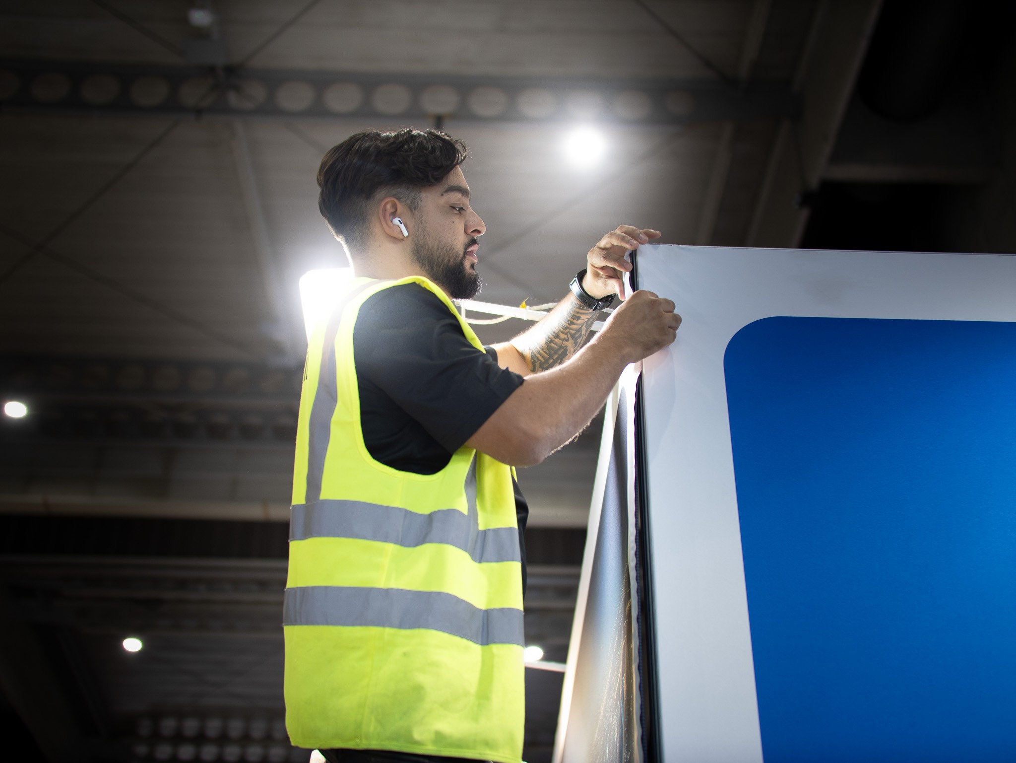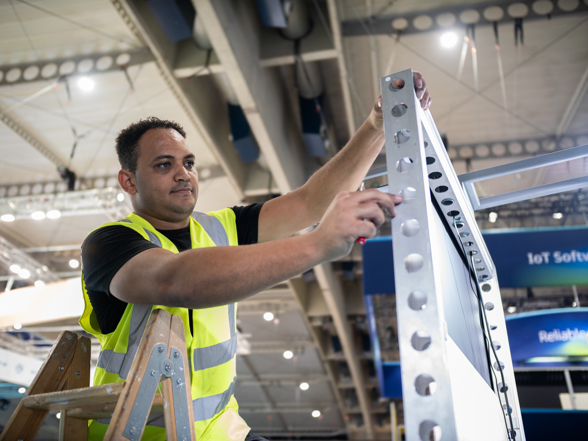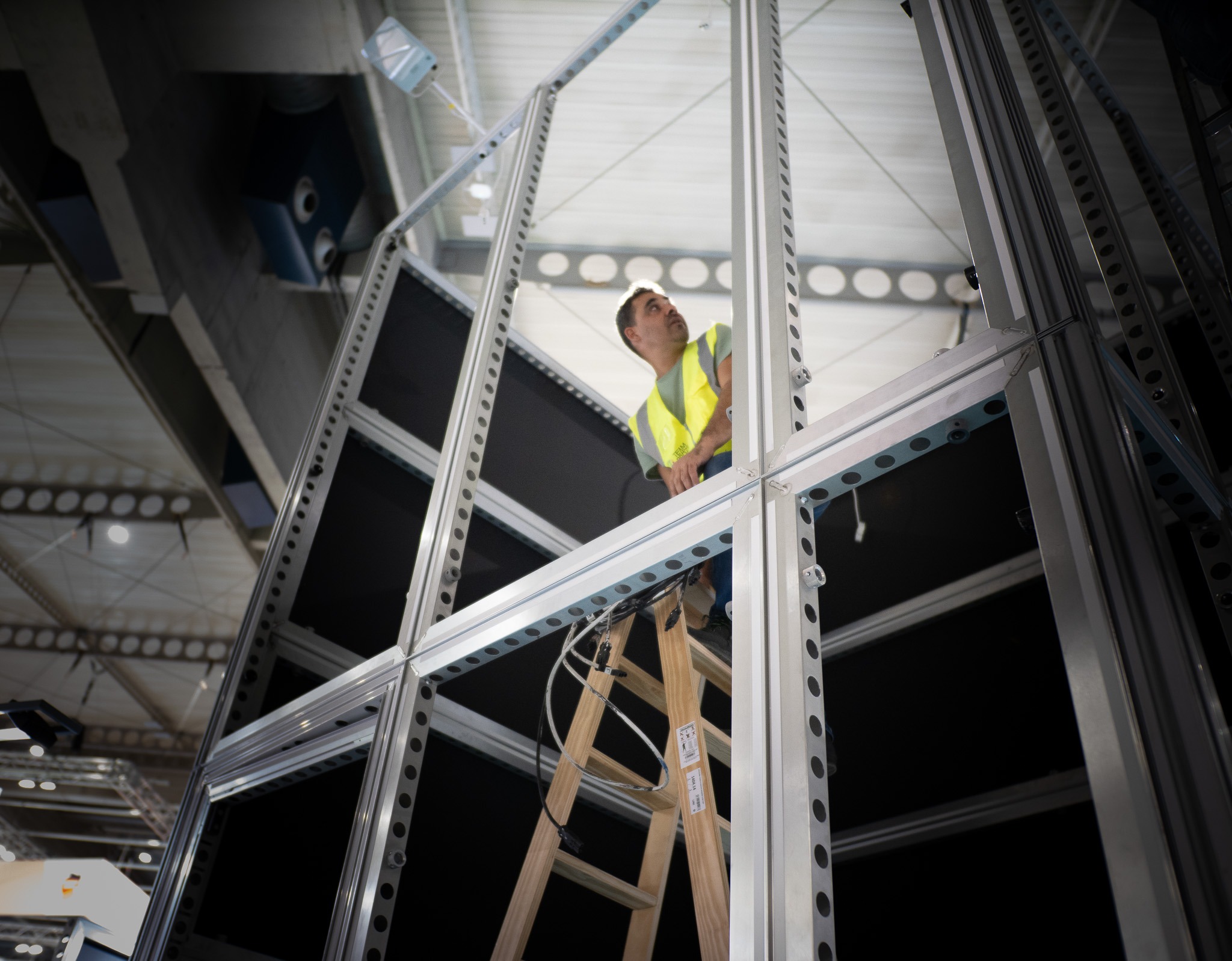 Producción, montaje y desmontaje: Combinamos perfiles de aluminio con carpintería para crear stands más sostenibles, reduciendo al máximo los residuos y reutilizando la mayoría de los materiales. Esto nos permite realizar montajes y desmontajes más eficientes, limpios y responsables con el medio ambiente.